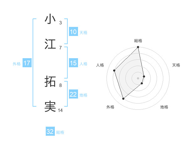 小江 拓実さんの総格は32画の5点!