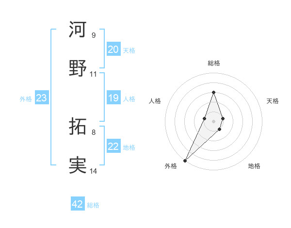 河野 拓実さんの外格は23画の5点!
