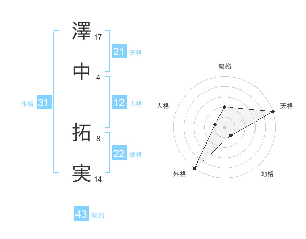 澤中 拓実さんを姓名の画数から五運を鑑定