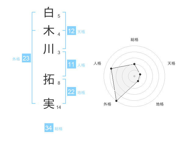 白木川 拓実さんの外格は23画の5点!
