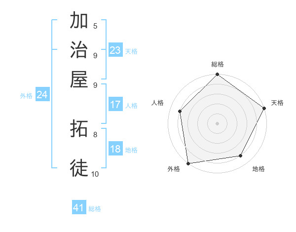 加治屋 拓徒さんを姓名の画数から五運を鑑定