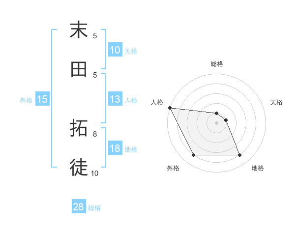 末田 拓徒さんの外格は15画の4点!