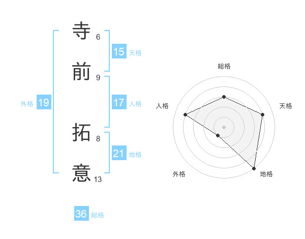 寺前 拓意さんの天格は15画の4点!