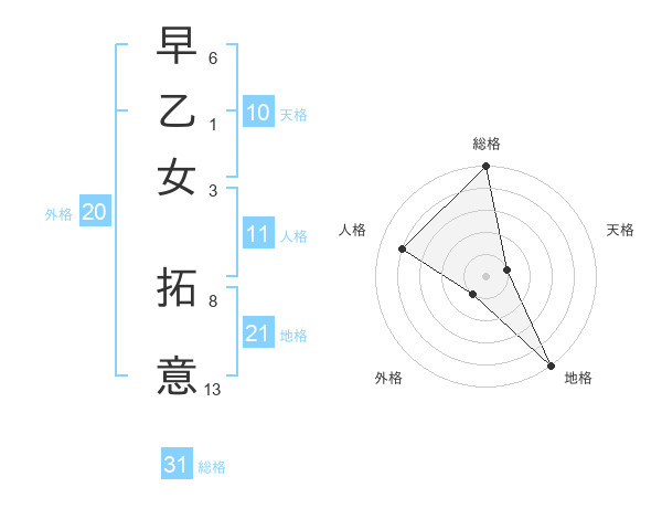 早乙女 拓意さんを姓名の画数から五運を鑑定