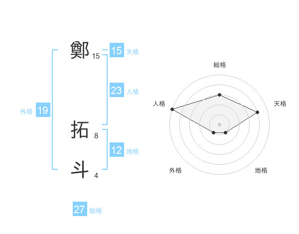 鄭 拓斗さんを姓名の画数から五運を鑑定