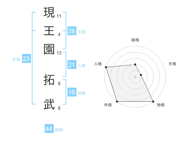 現王園 拓武さんの総格は44画の2点!