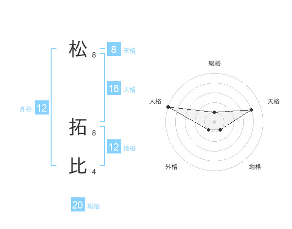 松 拓比さんの総格は20画の1点!