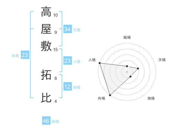 高屋敷 拓比さんを姓名の画数から五運を鑑定
