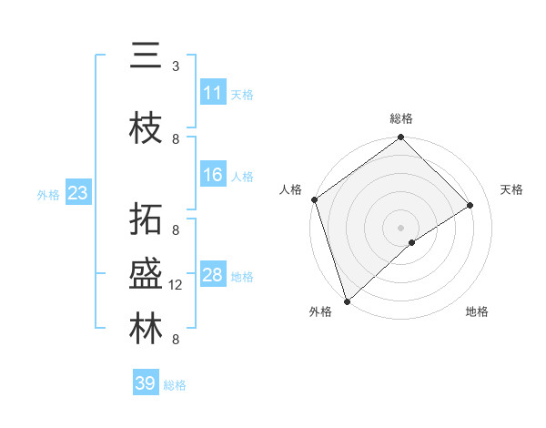 三枝 拓盛林さんの外格は23画の5点!