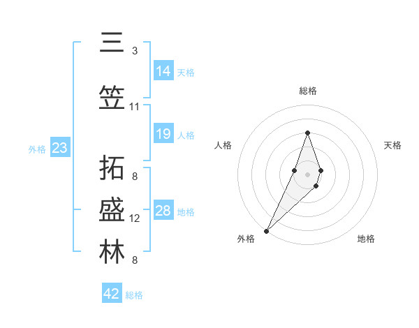 三笠 拓盛林さんを姓名の画数から五運を鑑定