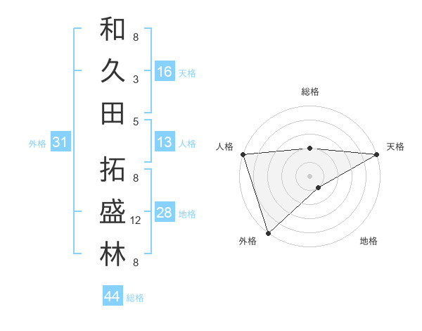和久田 拓盛林さんを姓名の画数から五運を鑑定