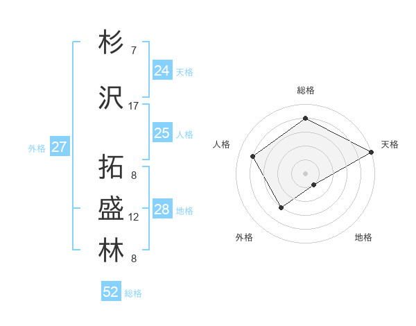 杉沢 拓盛林さんを姓名の画数から五運を鑑定