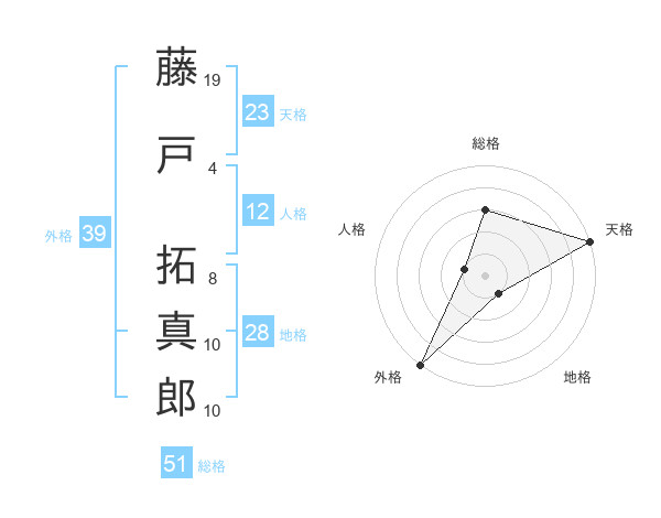 藤戸 拓真郎さんの総格は51画の3点!