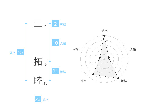 二 拓睦さんの総格は23画の5点!