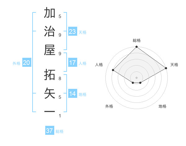 加治屋 拓矢一さんを姓名の画数から五運を鑑定