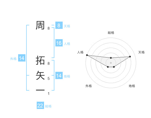 周 拓矢一さんを姓名の画数から五運を鑑定