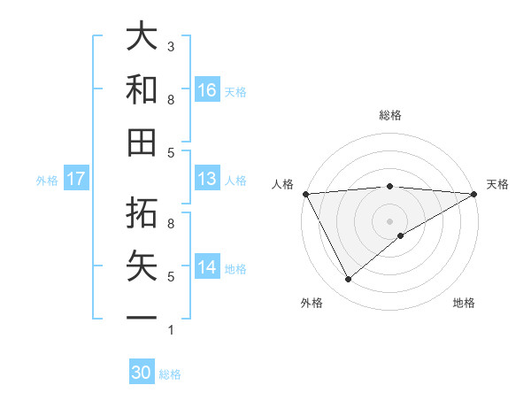 大和田 拓矢一さんを姓名の画数から五運を鑑定