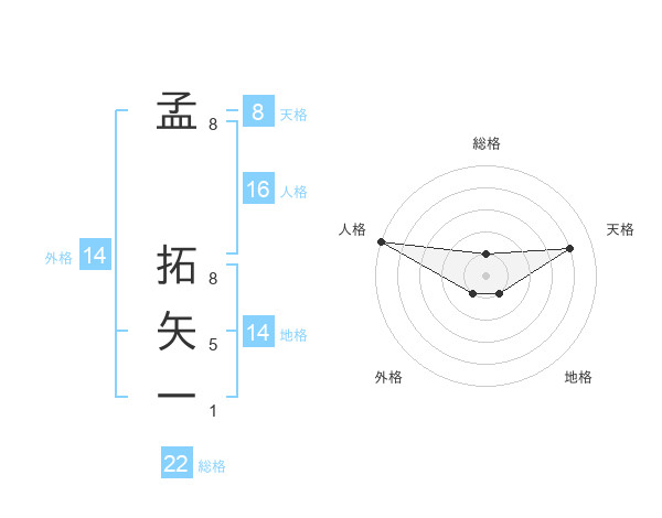 孟 拓矢一さんの総格は22画の1点!