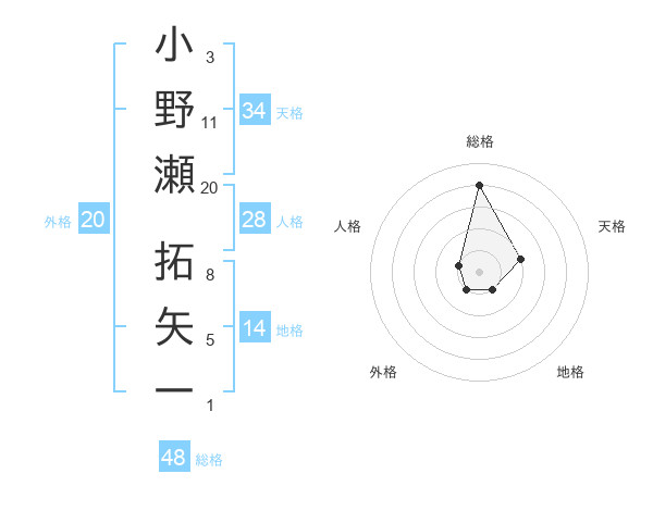 小野瀬 拓矢一さんを姓名の画数から五運を鑑定