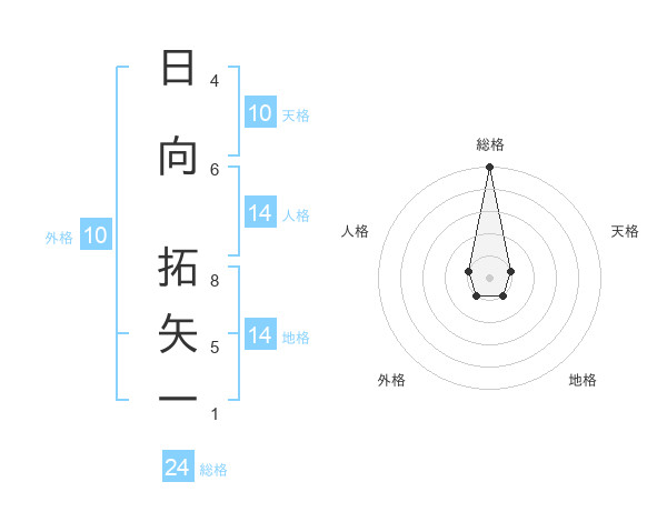 日向 拓矢一さんを姓名の画数から五運を鑑定