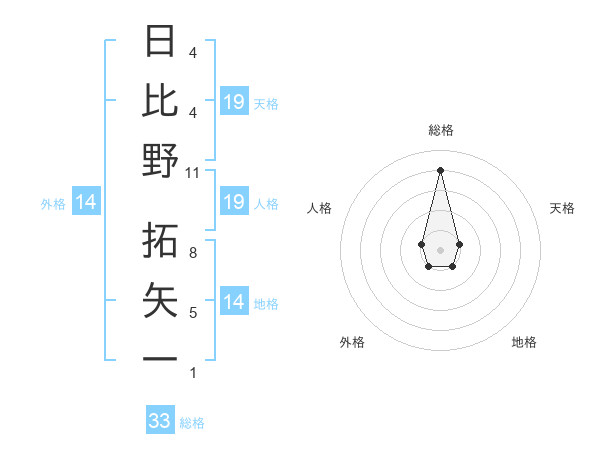 日比野 拓矢一さんを姓名の画数から五運を鑑定