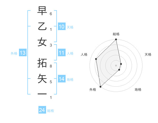早乙女 拓矢一さんの総格は24画の5点!