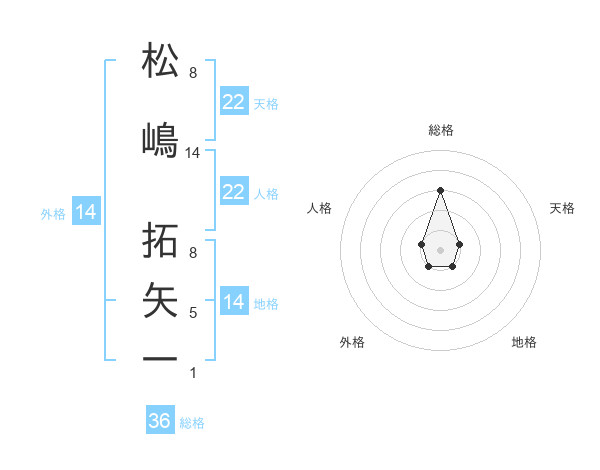 松嶋 拓矢一さんを姓名の画数から五運を鑑定