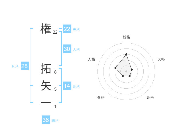 権 拓矢一さんを姓名の画数から五運を鑑定