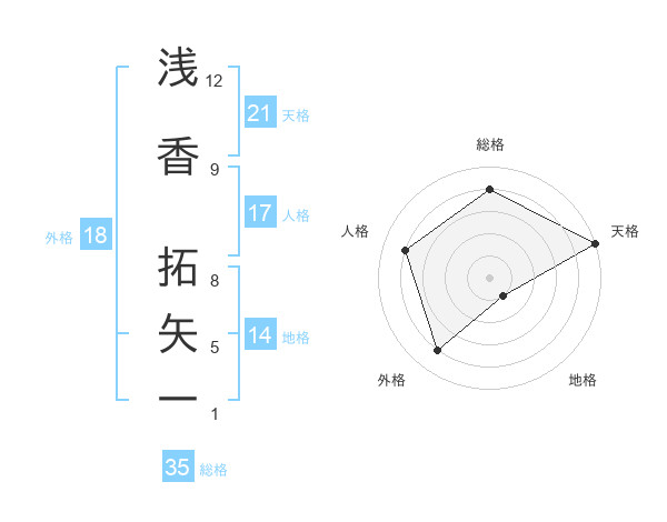 浅香 拓矢一さんを姓名の画数から五運を鑑定