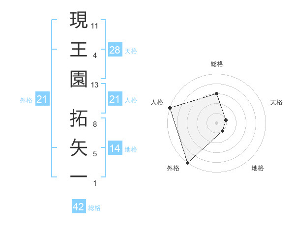 現王園 拓矢一さんを姓名の画数から五運を鑑定