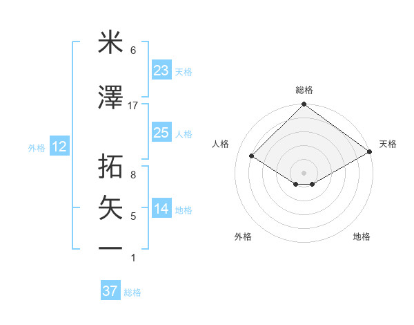 米澤 拓矢一さんの総格は37画の5点!