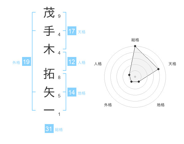 茂手木 拓矢一さんを姓名の画数から五運を鑑定