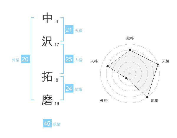 中沢 拓磨さんを姓名の画数から五運を鑑定