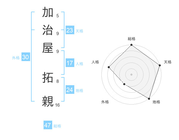 加治屋 拓親さんを姓名の画数から五運を鑑定