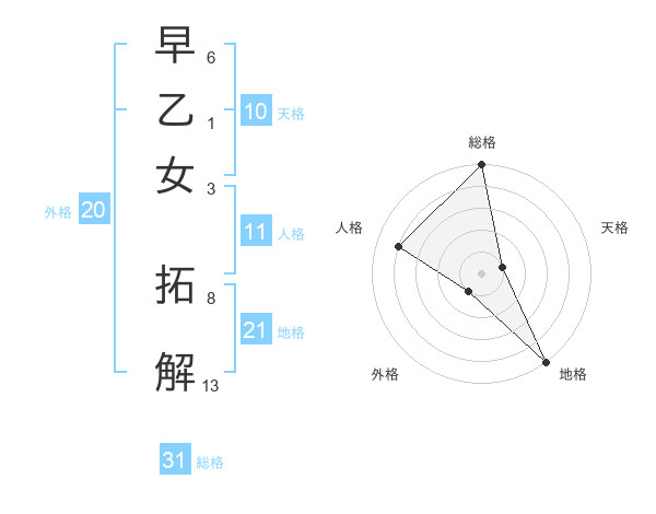 早乙女 拓解さんを姓名の画数から五運を鑑定