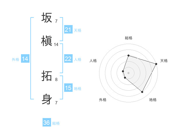 坂槇 拓身さんを姓名の画数から五運を鑑定