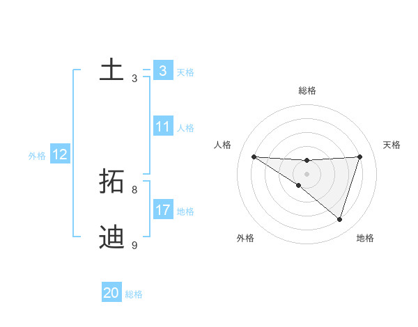 土 拓迪さんの総格は20画の1点!