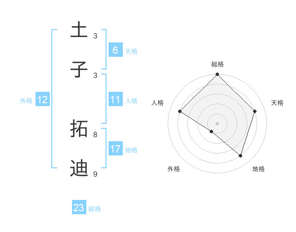 土子 拓迪さんの総格は23画の5点!