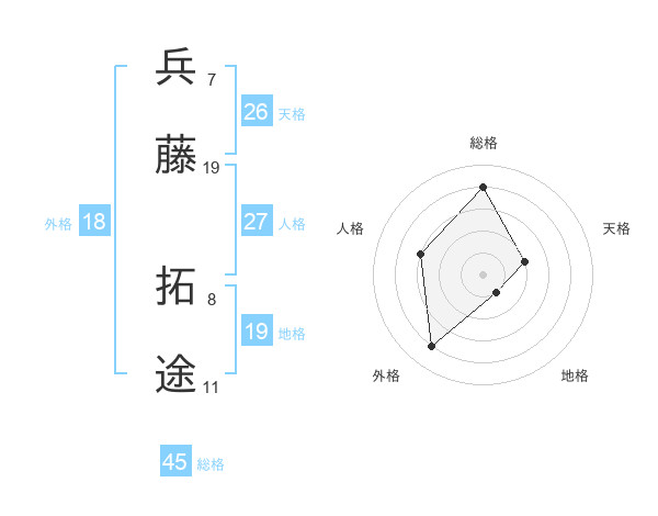 兵藤 拓途さんを姓名の画数から五運を鑑定