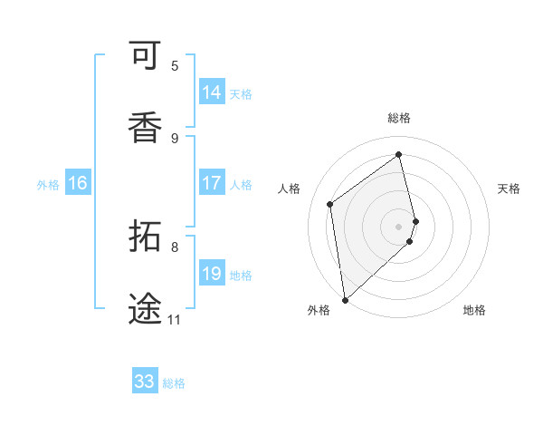 可香 拓途さんの総格は33画の4点!