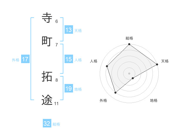 寺町 拓途さんの総格は32画の5点!