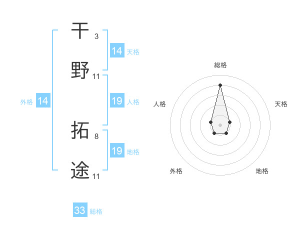 干野 拓途さんの総格は33画の4点!
