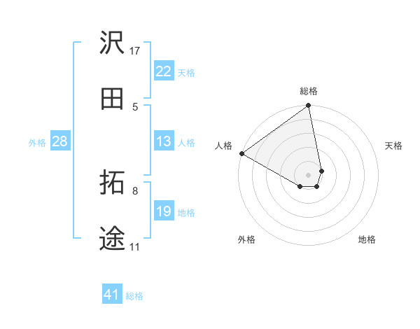 沢田 拓途さんを姓名の画数から五運を鑑定
