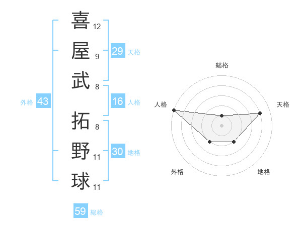 喜屋武 拓野球さんを姓名の画数から五運を鑑定