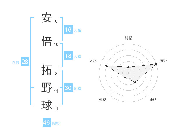安倍 拓野球さんを姓名の画数から五運を鑑定