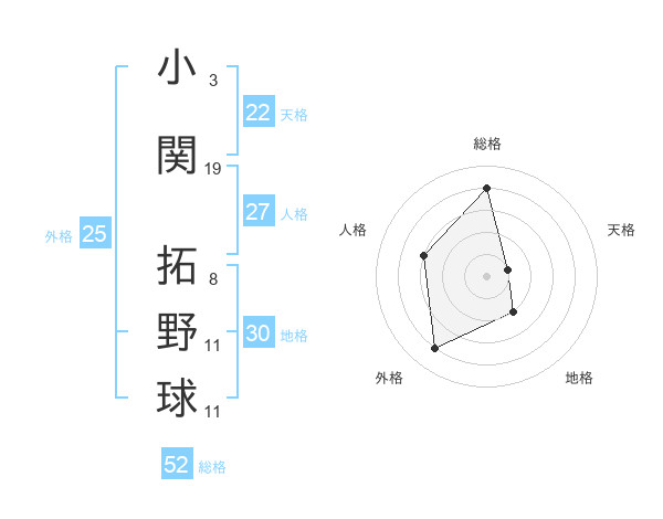 小関 拓野球さんを姓名の画数から五運を鑑定