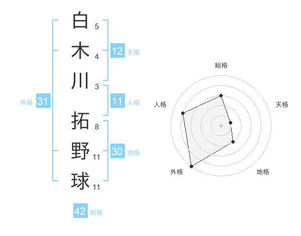 白木川 拓野球さんを姓名の画数から五運を鑑定