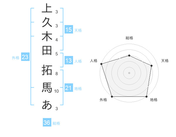 上久木田 拓馬あさんを姓名の画数から五運を鑑定
