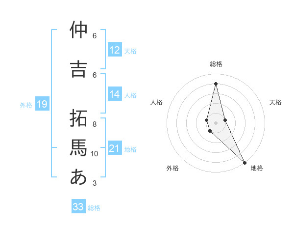 仲吉 拓馬あさんの総格は33画の4点!