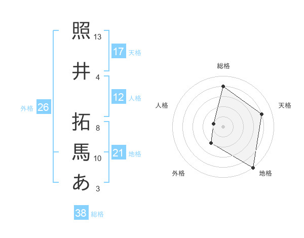 照井 拓馬あさんを姓名の画数から五運を鑑定